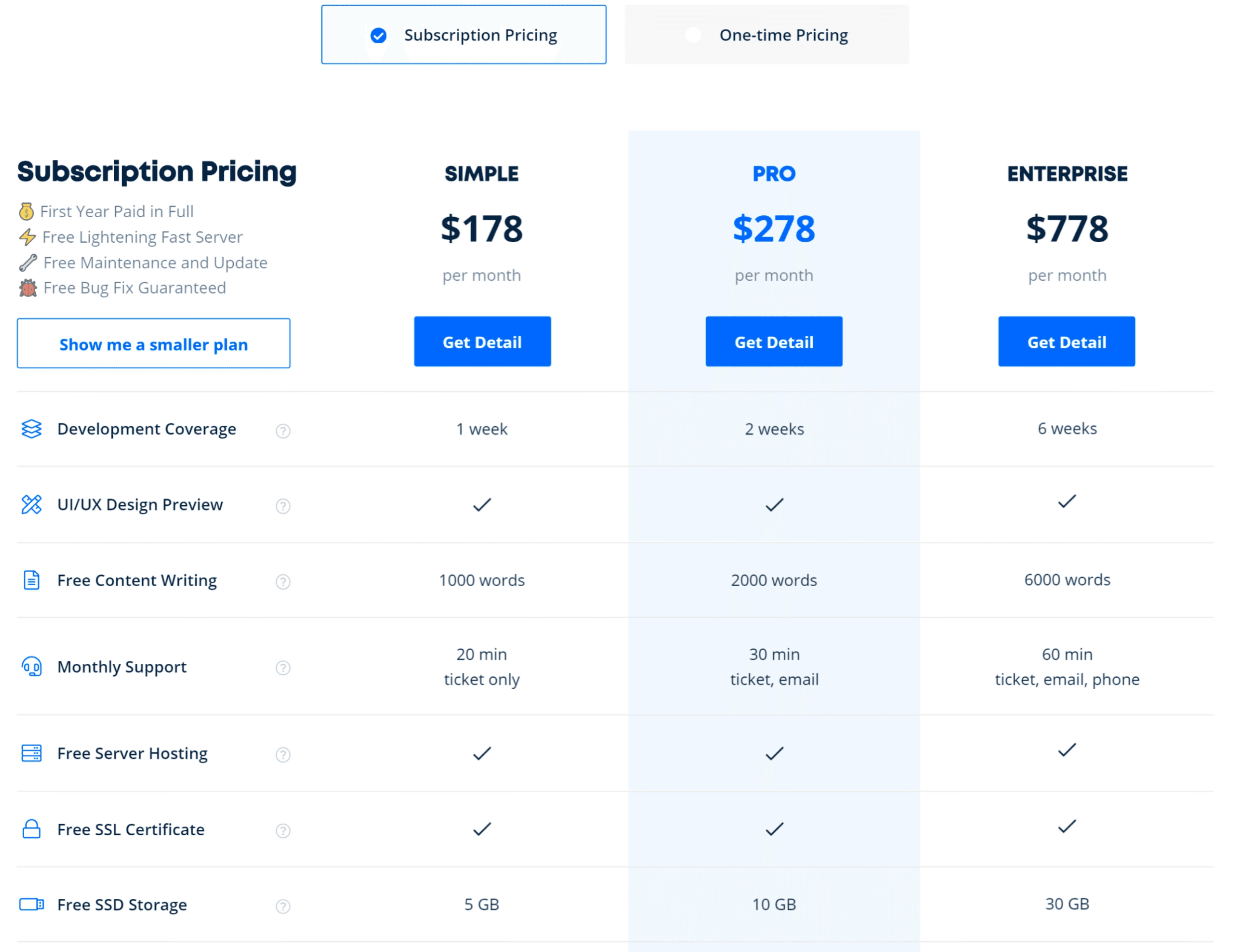 clear & detailed service pages