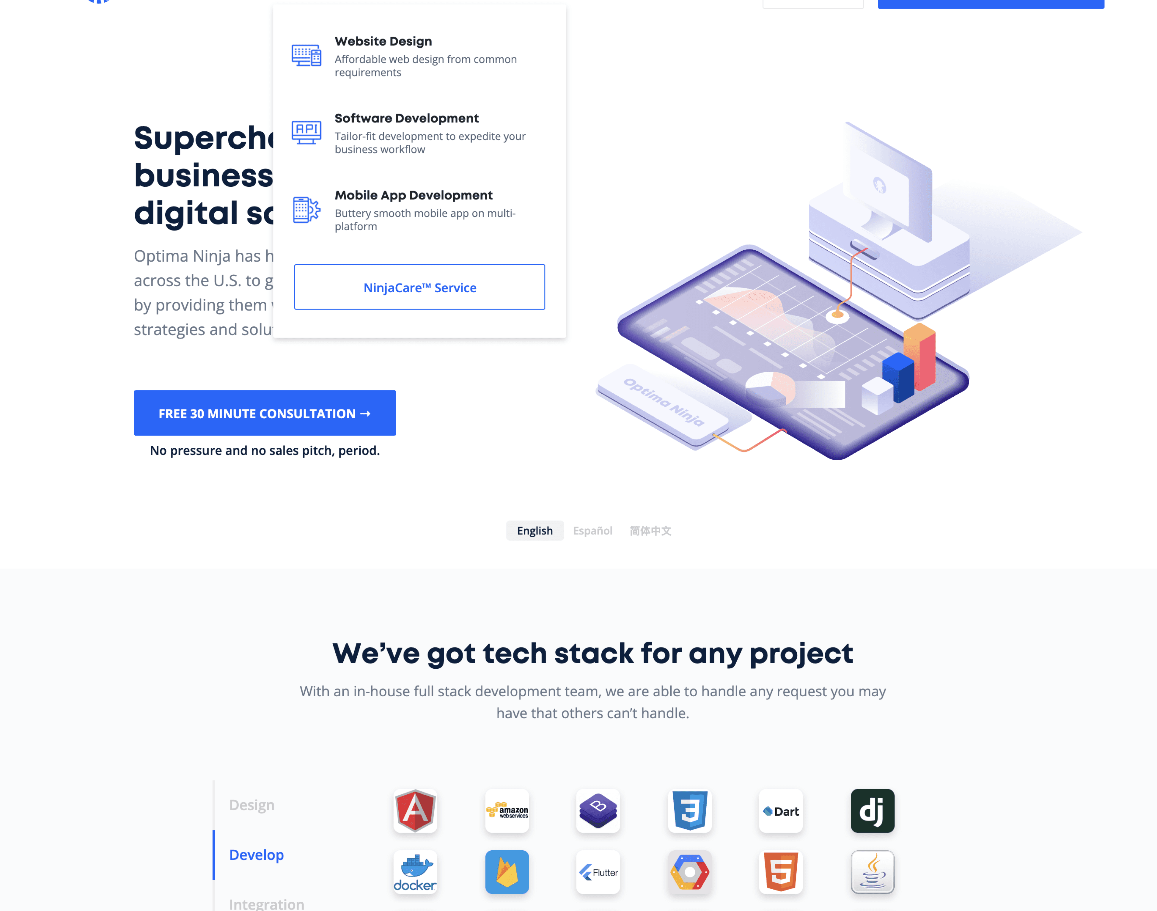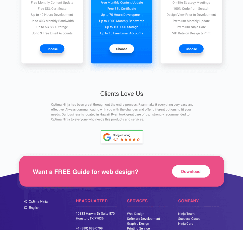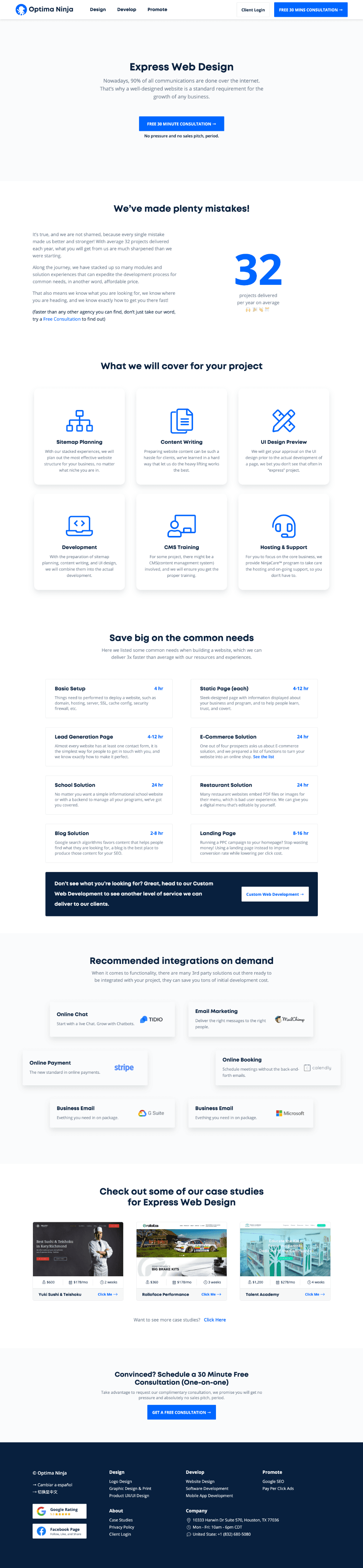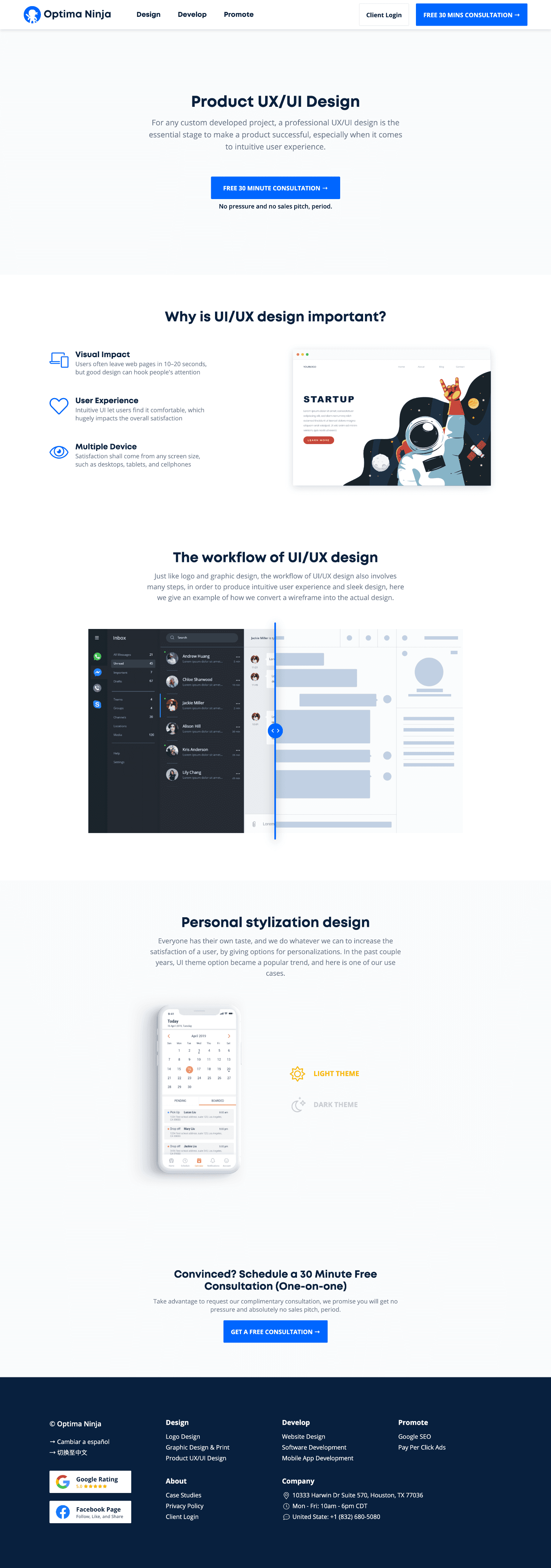 Optima Ninja is a startup company based in Houston, TX, that provide design & coding services for small business. I worked as solo UI/UX designer in the company. 3 version of websites, 1,000+ clicks per day; rank top 5 on Chinese SEO; brings 120% more effective leads.