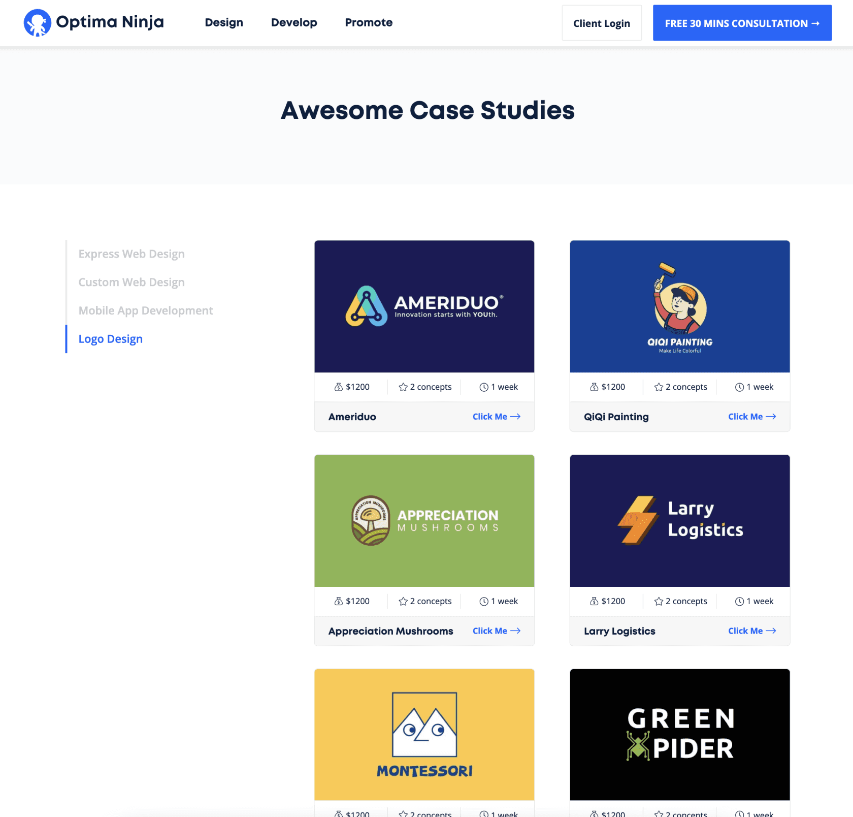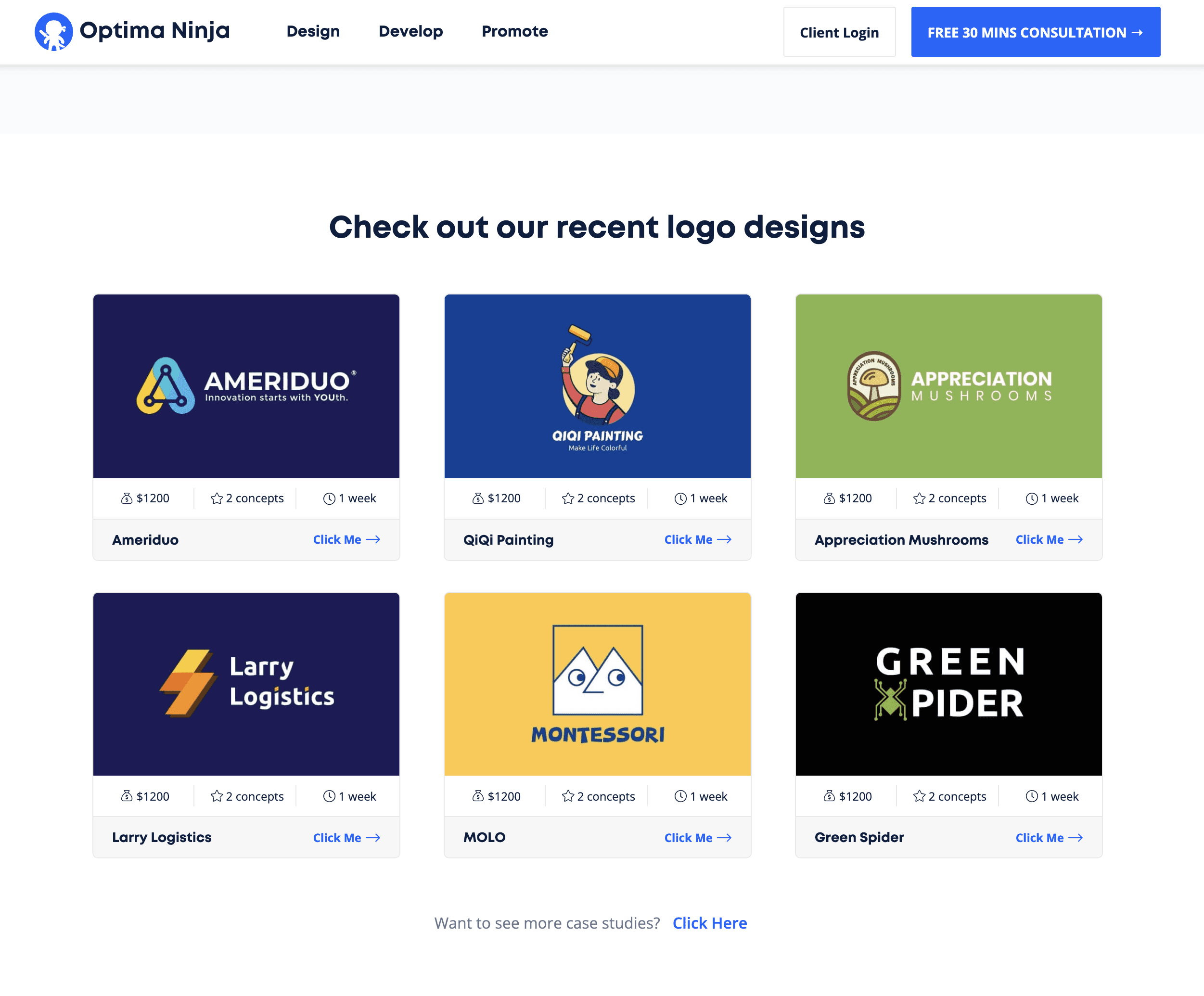 The final version website was launched in 2020, just a few months later, optima ninja had already seen the jump in conversion rate and increased clicks on case studies without any other advertisements.
