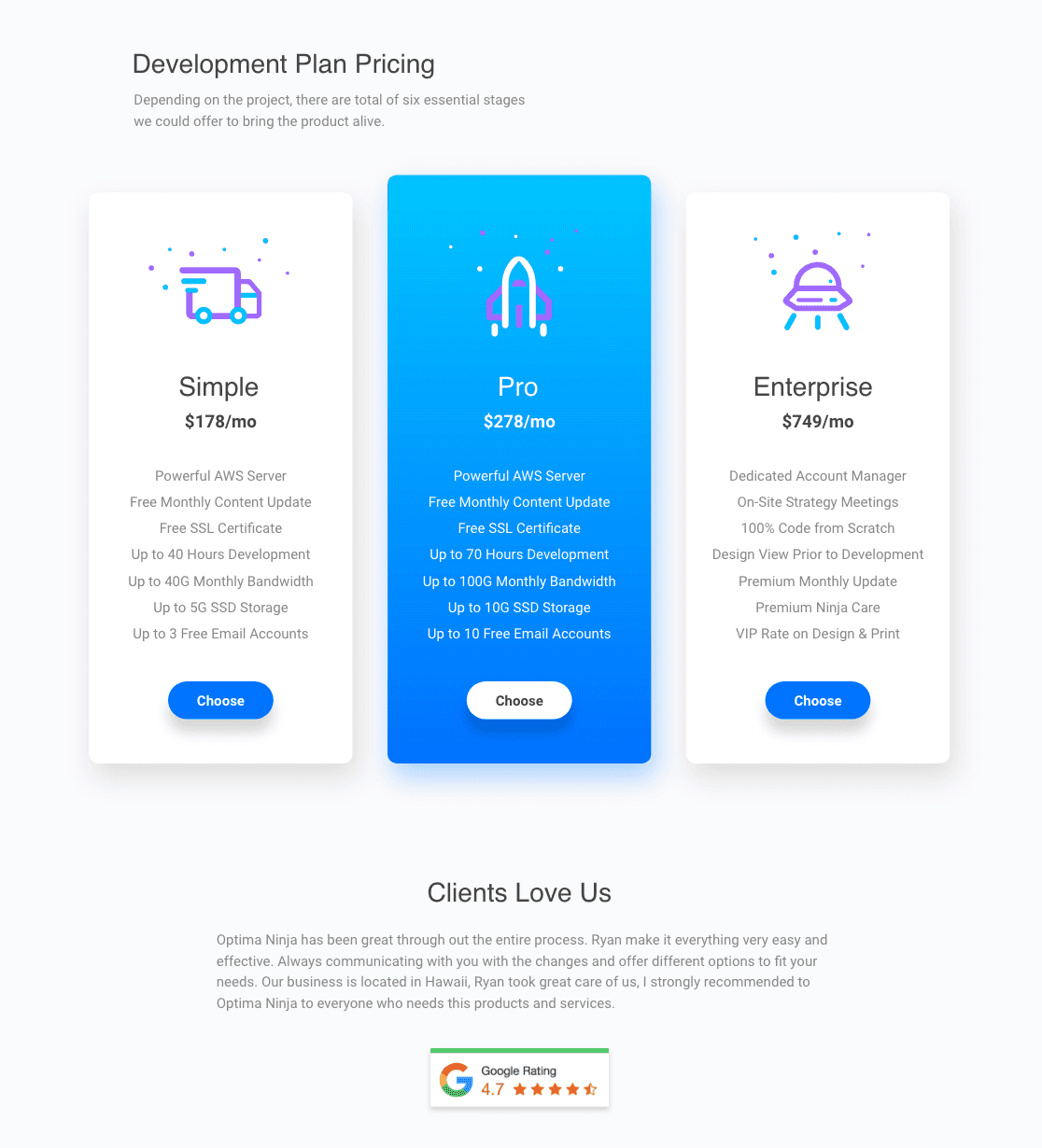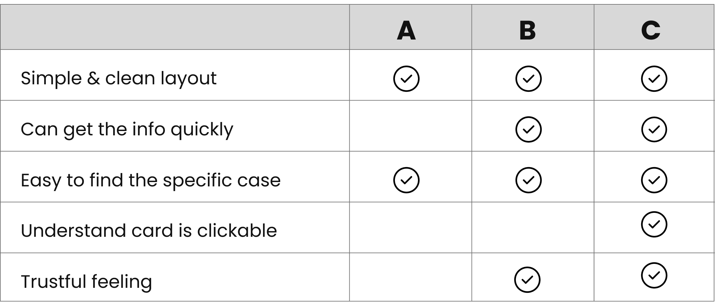 After that, I created a survey and emailed to 10 existing clients, asked them to choose the best option based on these 5 considerations.