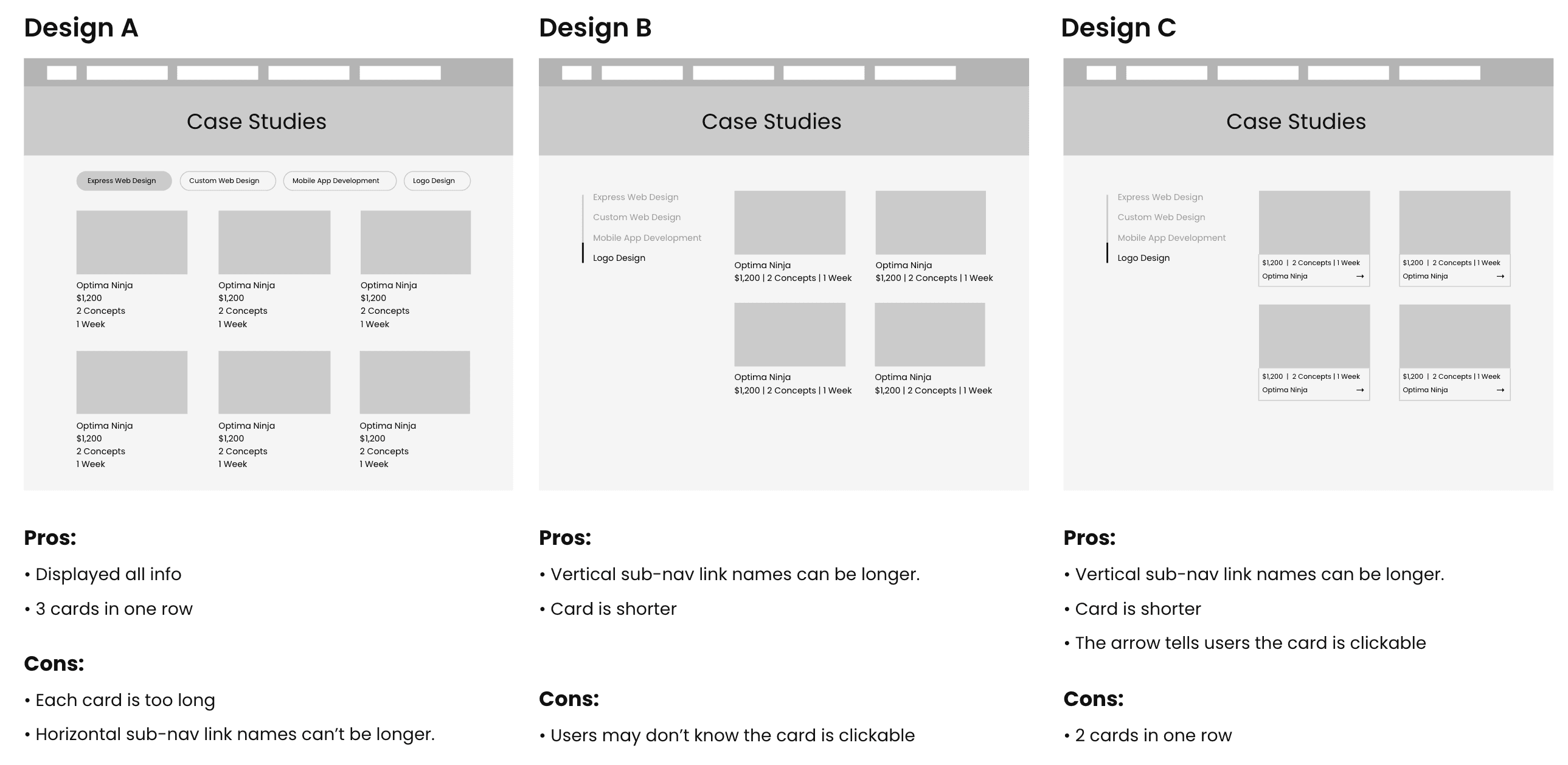 Comparison - case studies layout